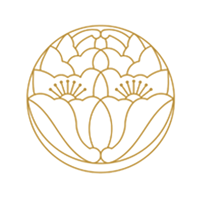 法然上人の生家・漆問家の家紋に、月をあしらったもので「月影杏葉紋(つきかげぎょうようもん)」と呼んでいます。